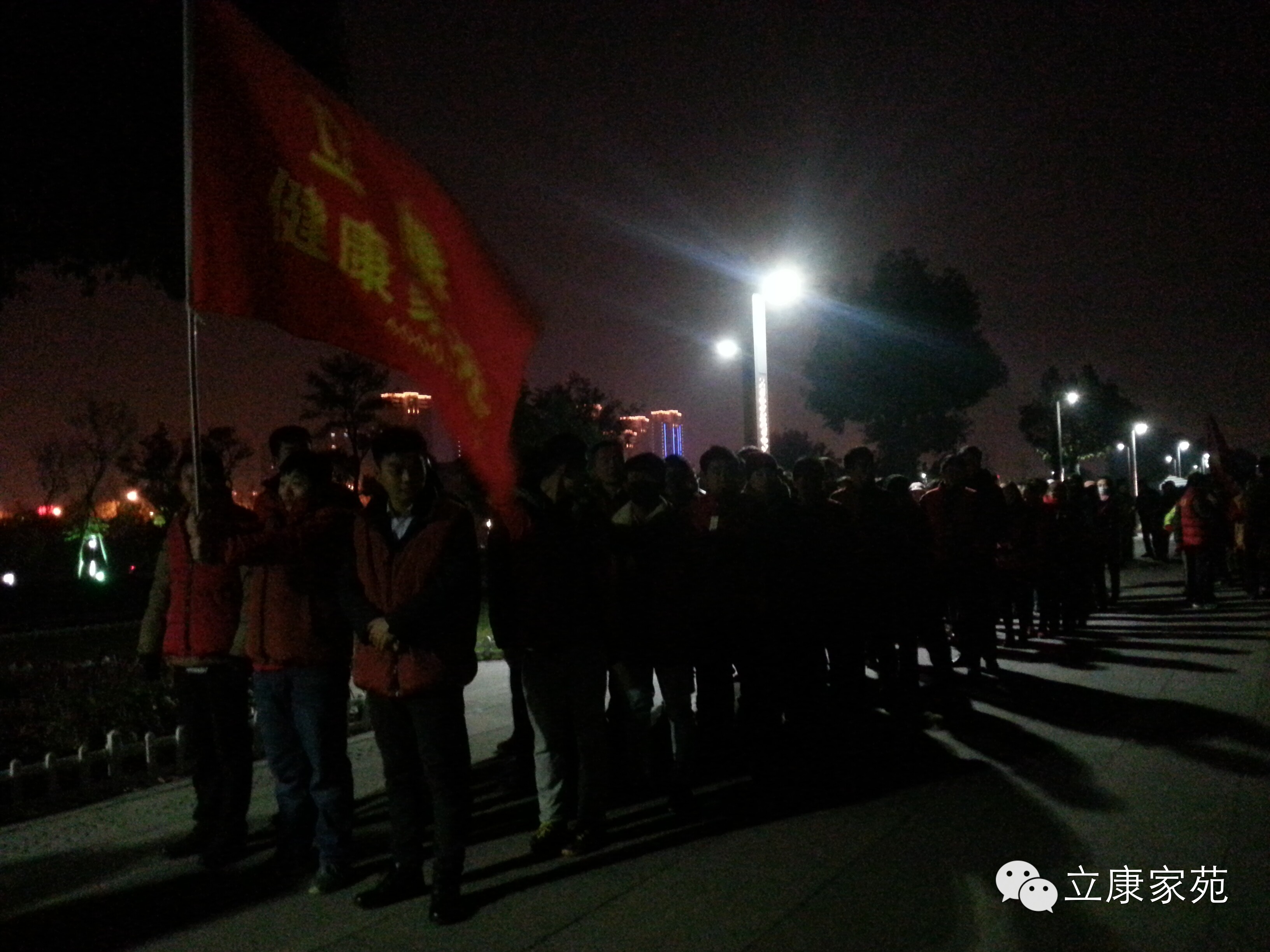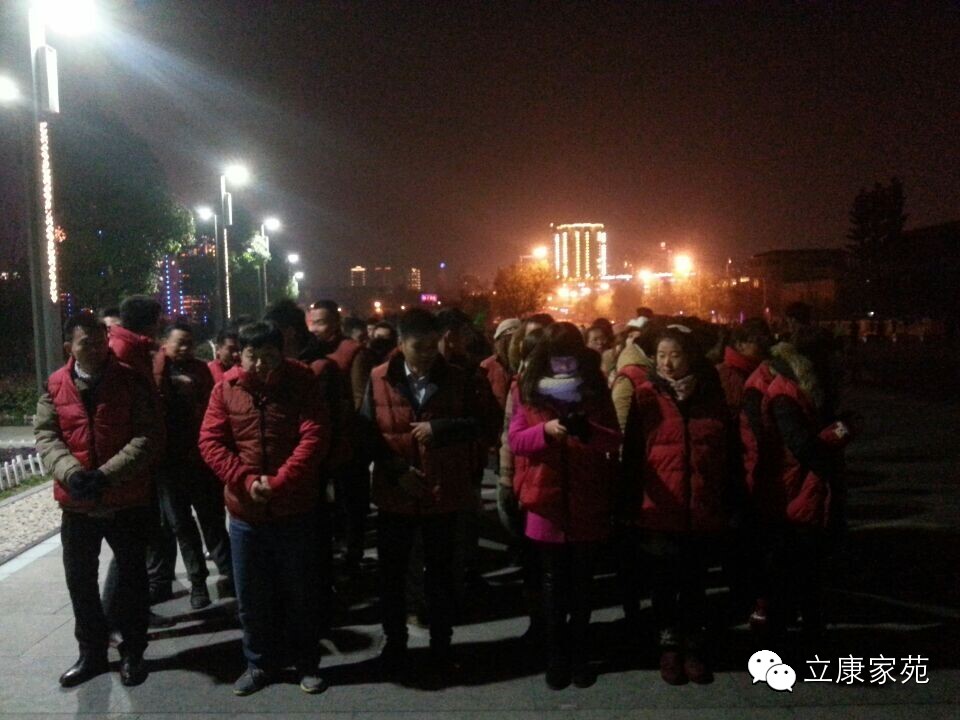 “集合了!立康的同事们!”徐秘书长操起小蜜蜂吼着组织起来,于是,同事们也停止了各自的取暖游戏,纷纷穿上印着“立康•健康家苑”的马甲,排好队静候发令,嘴里却依旧呲着凉风感叹这冰凉的空气。